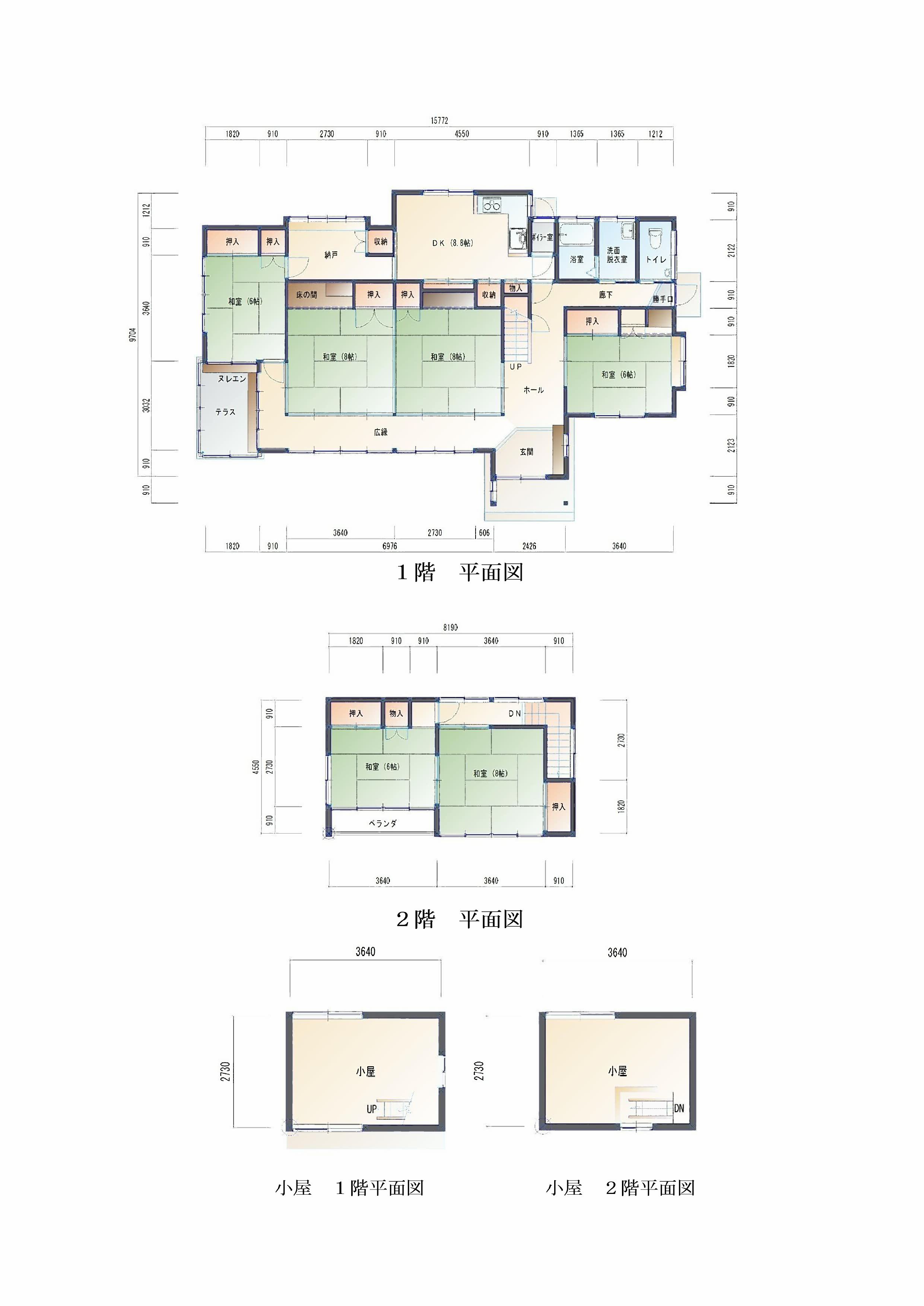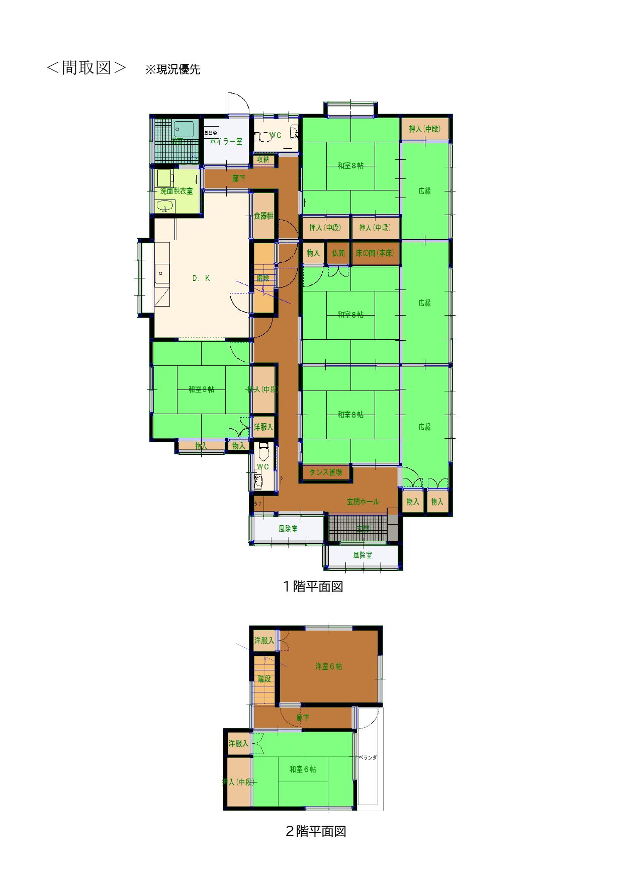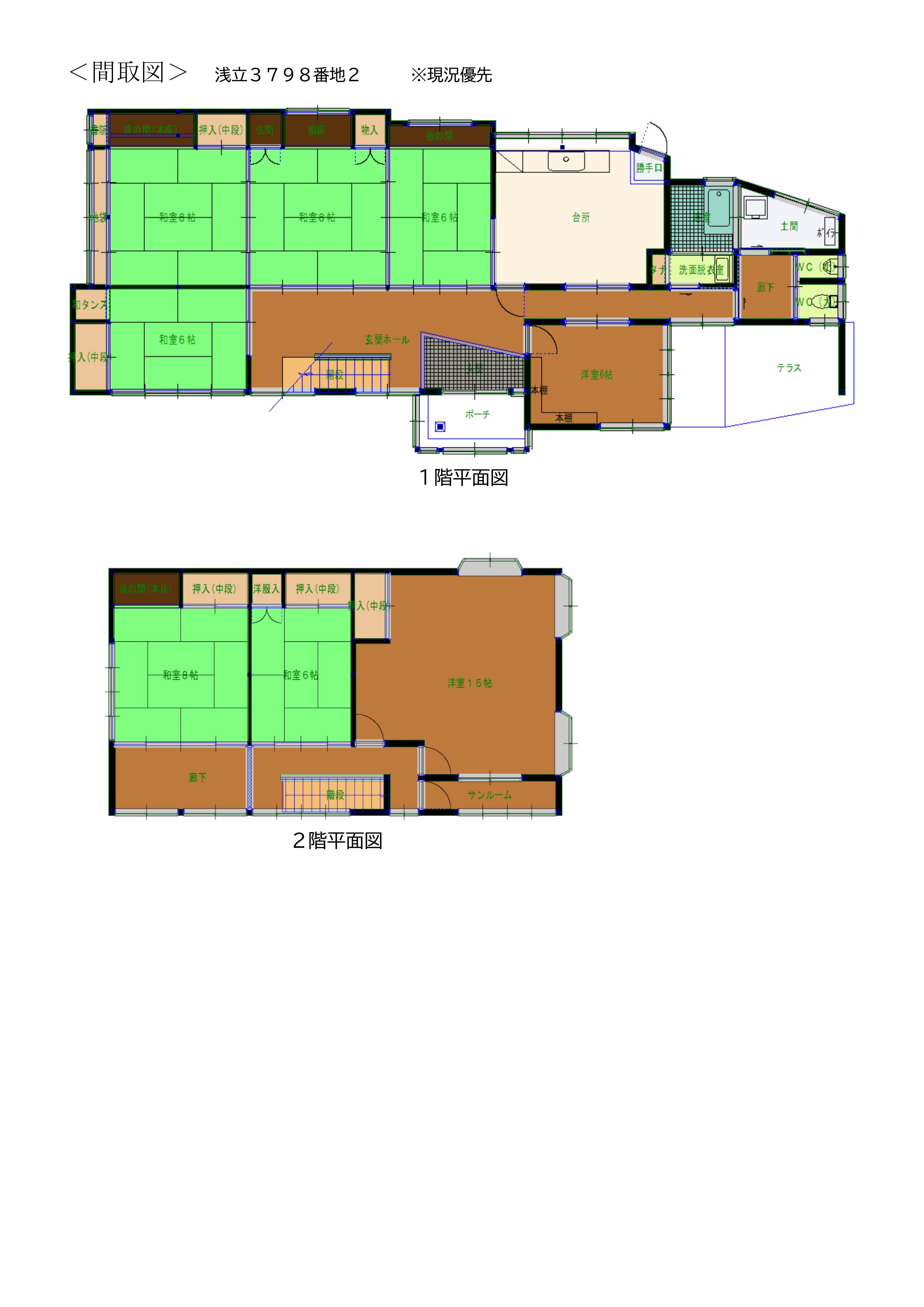 1973年新築、1981年増築の建物180㎡の6DK。1階には広縁がある。敷地は765㎡(231坪)だが、