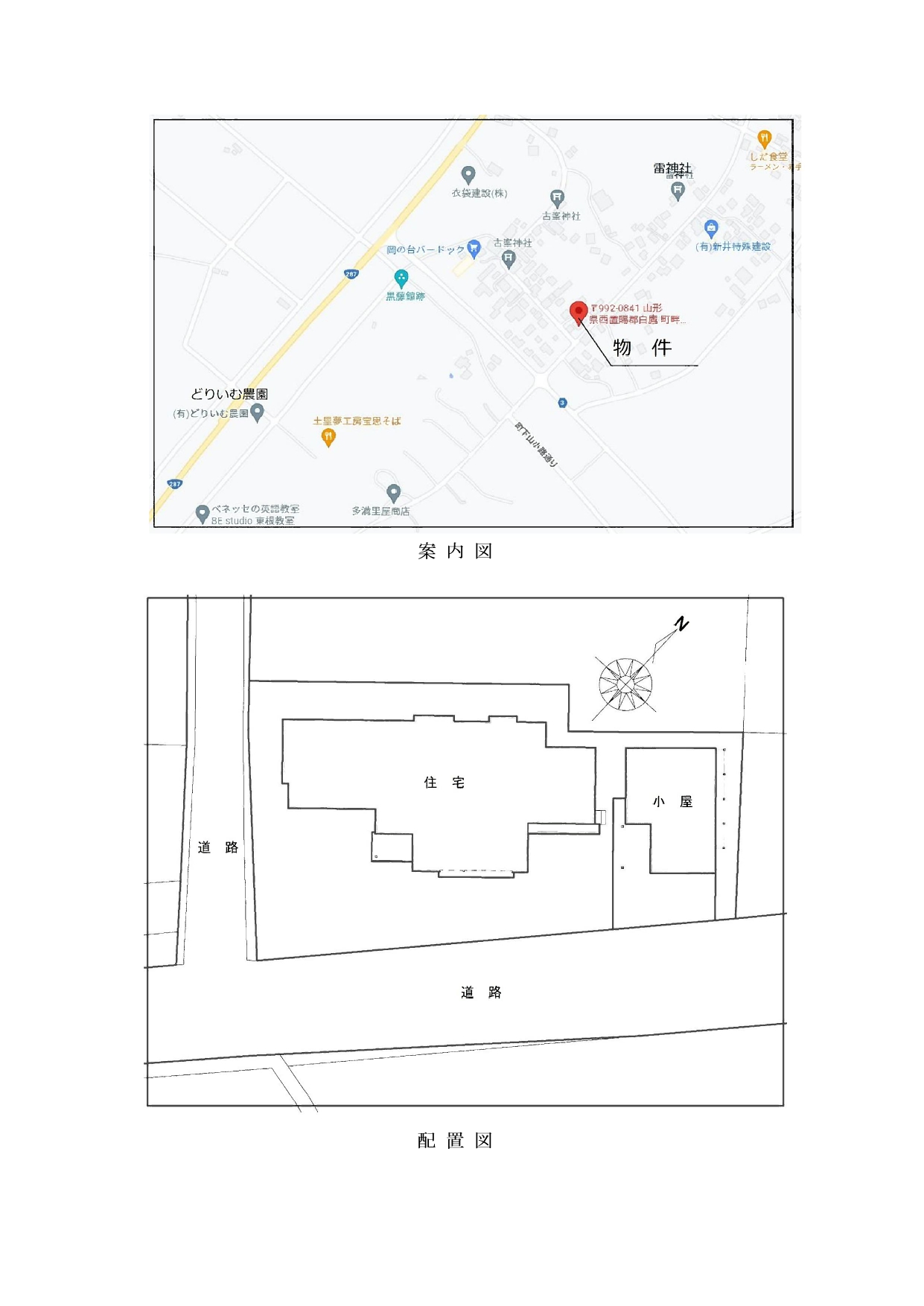 白鷹町鮎貝2407。長井フラワーライン四季の郷駅から北へ500m。鮎貝八幡宮の東200mの住宅街にある。